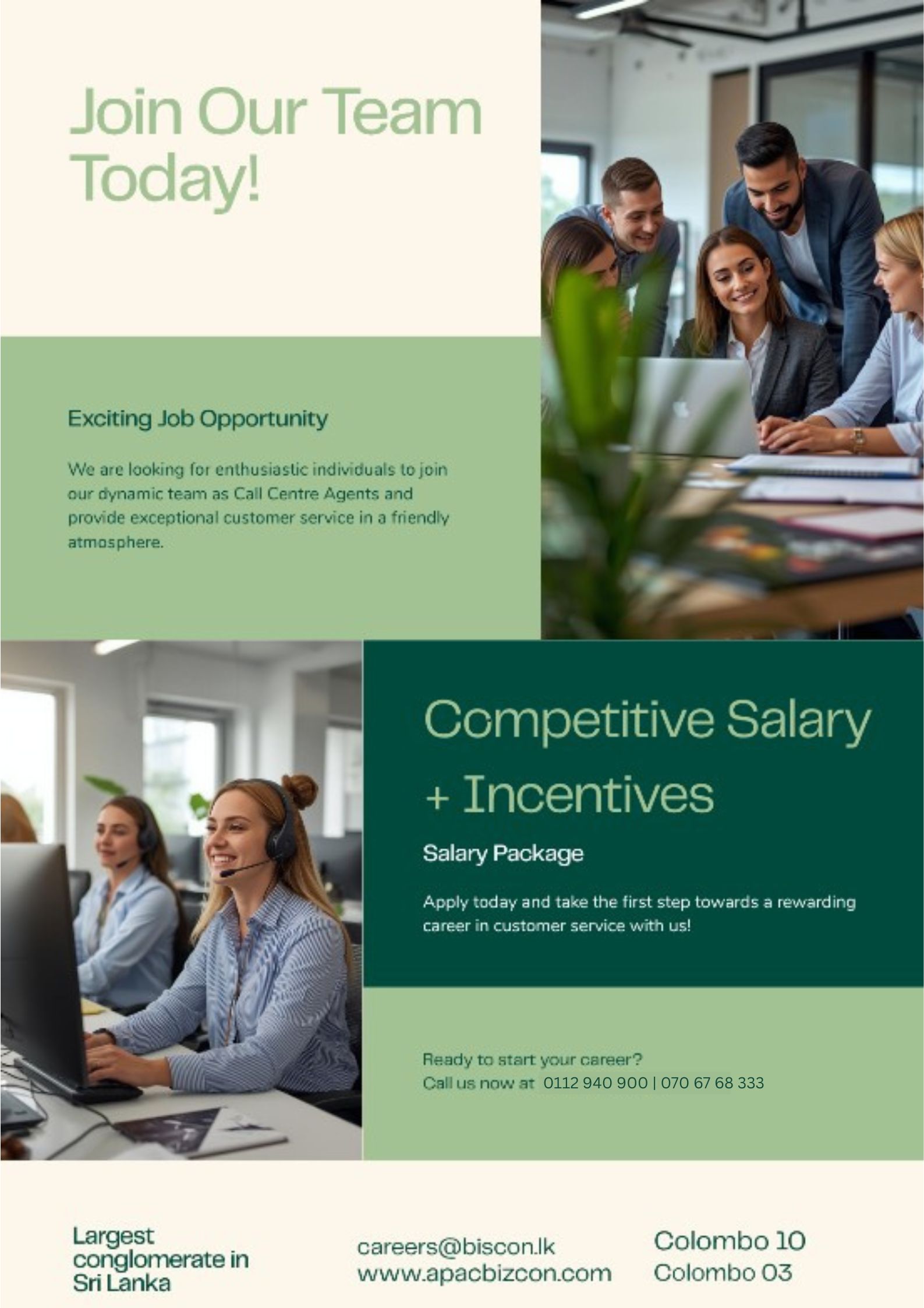 Fluency in English and Sinhala (Tamil is an added advantage)